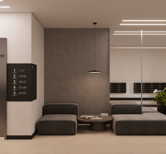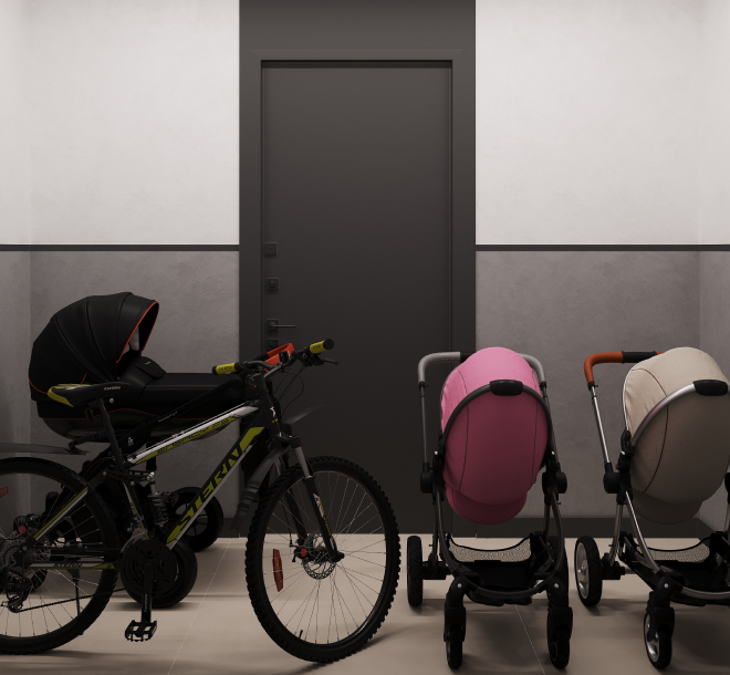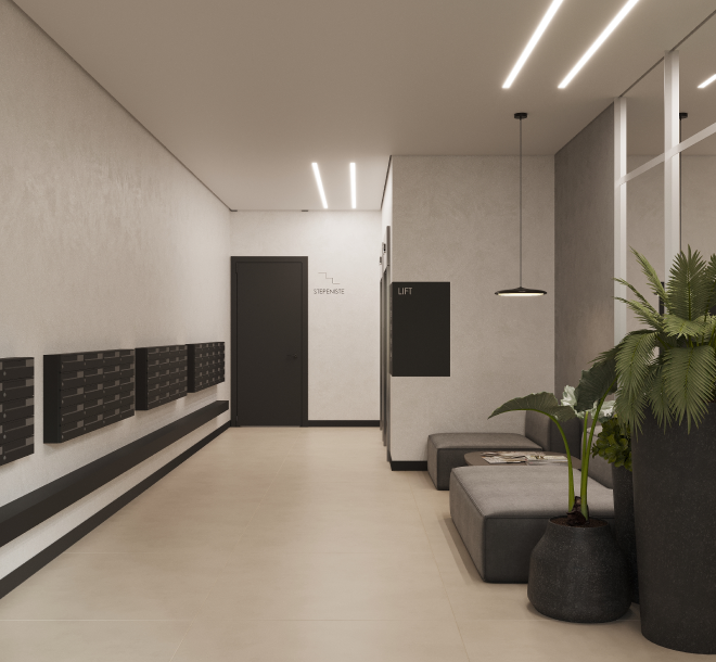 Ulaz i stepeništa će vas iznenaditi svojim stilom i elegancijom. Na svakom spratu predviđena su mesta za dečija kolica.